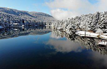 Beyaz örtüyle kaplanan Gölcük Tabiat Parkı büyülüyor