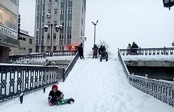 Samsun'da vatandaşlar merdivenleri kayak pistine çevirdi