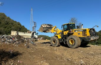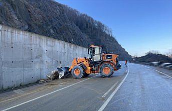 Bartın'da vahşi depolama alanının dolması nedeniyle yola dökülen çöpler kaldırılıyor