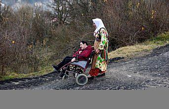 Down sendromlu kızını patika yolu kullanarak evlerine götürüyor