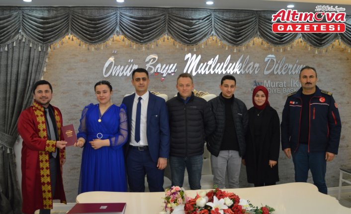 Nikah tarihlerini özel bir tarihe denk getirmek isteyen Ceren ve itfaiye eri Bayram Gür'ün nikahını kıyan nikah memuru Hasan Demir, genç çiftte mutluluklar dileyerek, evlenme imza attıkları kalemi günün anısına onlara hediye etti.