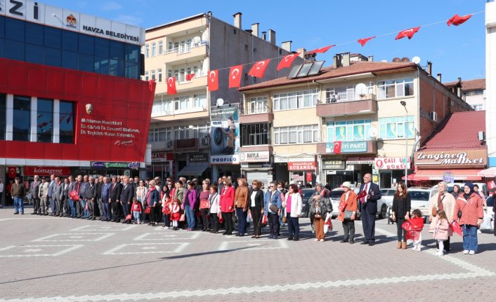 Mehmetçik Meydanı'nda düzenlenen törende Cumhuriyet'in ilanının 101.yıl dönümü dolayısıyla Atatürk Anıtına CHP Havza İlçe Başkanı Şener Geçit ve ADD Başkanı Zehra Altıntaş tarafından çelenk sunuldu.