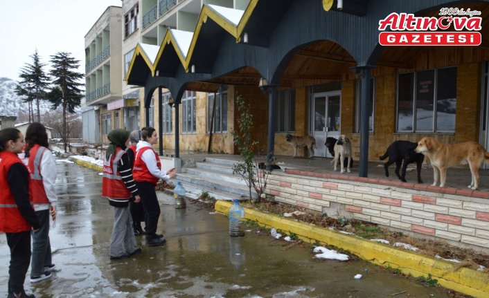 Samsun'un Havza ilçesinde Genç Kızılay Şubesi tarafından yiyecek bulmakta zorluk çeken sokak hayvanları için belirli yerlere mama konuldu.
