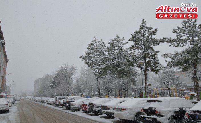 Öğlen saatlerinde başlayan kar yağışı ile birlikte kar kalınlığı, ilçe merkezinde 5, yüksek kesimlerde 10 santimetreye ulaştı.