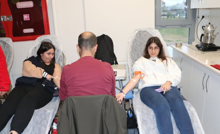 Kan bağışı yapan öğrencilere ikramda bulunuldu. SAMSUN (AA)