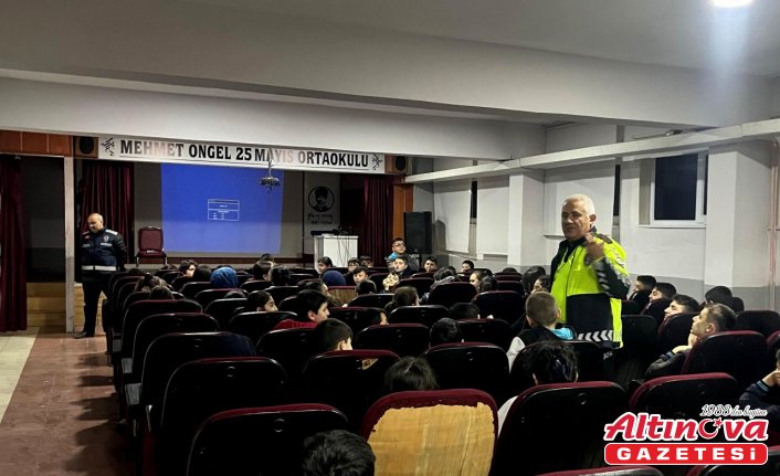 Toplum destekli polis Özkan Cinbek ve trafik polisi Osman Özmen, Mehmet Öngel 25 Mayıs Ortaokulu öğrencilere yönelik seminerde, teknolojideki haberleşme ve iletişimin geldiği nokta, güvenli internet kullanımı ile bilişim suçları ve cezai müeyyideleri konularıyla trafik kuralları ve uyulması gerekenler hakkında bilgilendirmede bulundu.