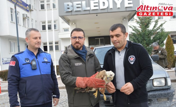 Havza Belediyesi Veterinerlik Hizmetleri Müdürlüğüne bağlı ekipler, ihbar üzerine Ankara-Samsun kara yolu İnönü Mahallesi mevkisinde yaralı ve bitkin haldeki şahini bulunduğu yerden aldı.