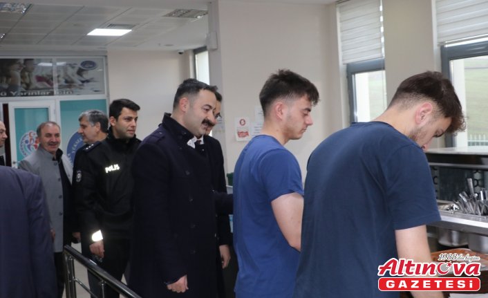 Öğrencilerle birlikte sıraya girerek yemeklerini alan Kaymakam Ayvat ve beraberindekiler, öğrencilerle sohbet etti.