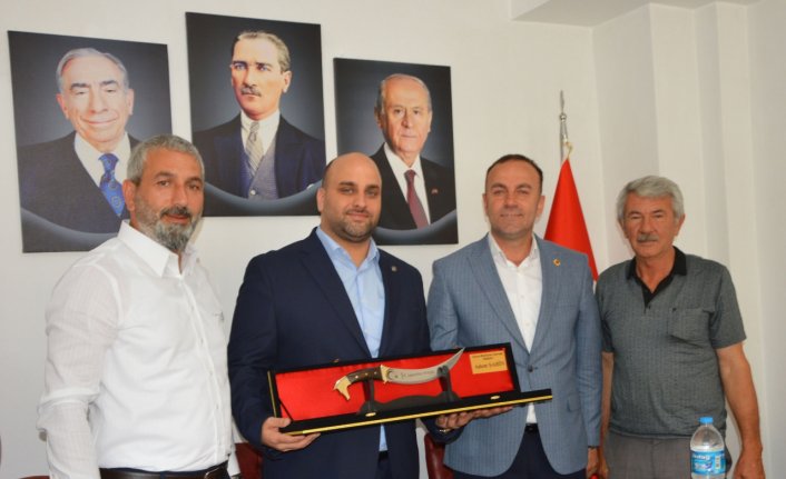 Ziyaretin sonunda Havza Muhtarları Derneği Başkanı Şahin, MHP İlçe Başkanı Yüksel'e hediye takdim etti. SAMSUN AA