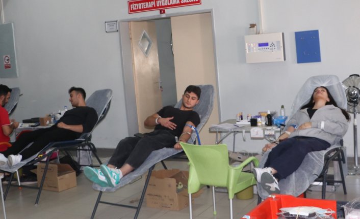 Kan bağışında bulunan gençlere Kızılay logolu kupa hediye edildi. SAMSUN (AA)