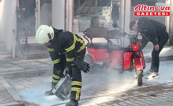 Şehit Hasan Aktar Caddesi'nde park halindeki Emre Akça'ya ait üç tekerlekli elektrikli bisikletin akü bölümü henüz belirlemeyen nedenle yangın çıktı.