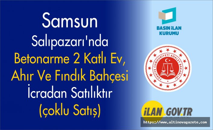 Özellikleri : Samsun İl, Salıpazarı İlçe, 302 Ada, 4 Parsel, ALANYAYKIN Mahalle/Köy, Samsun İli, Salıpazarı İlçesi, Alanyaykın mahallesi 302 ada 4 numaralı parseldeki niteliği Betonarme iki katlı mesken ve betonarme bir katlı ahır fındık bahçesi olan taşınmaz:Taşınmaz 20-25 yaş görünümünde fındık bahçesidir. Tapu kaydına göre toplam alanı 12.734,84 m² dir. Toprak yapısı killi- tınlı yapıdadır. Sulanabilir tarım arazisidir. Alanyaykın mahallesi yerleşim yeri alanı içerisindedir. Meyili % 2-5 arasında düz arazidir. Salıpazarı İlçe merkezine yaklaşık 4,5 km, Samsun İl merkezine 51 km mesafededir.Taşınmaz üzerinde iki katlı betonarme karkas cinsinde yapılmış mesken bulunmakta olup, toplam 216 m2 alanlı, çatısız, sıvalı ve boyalıdır. . Tamamen bitmiş durumdadır. Kullanılmaktadır. Pencereleri pvc, dış kapı çelik , ıslak alanlar seramik ve oda tabanları laminat kaplamadır.Taşınmaz üzerinde tek katlı yığma cinsinde yapılmış 4 adet ahır mevcut olup, toplam 560 m2 alanlı, çelik çatılı, saç cepheli,. Tamamen bitmiş durumdadır. Kullanılmaktadır. Ahır tabanları beton kaplama, kapılar demir doğramalı, ahır içlerinde beton perdeli yem yerleri vardır.