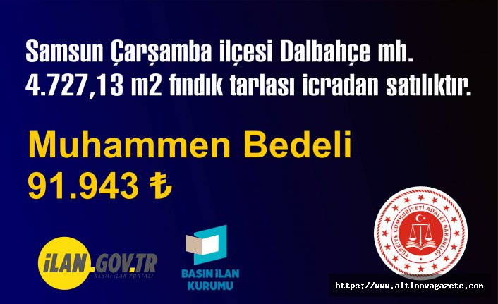 Özellikleri : Samsun İl, Çarşamba İlçe, 107 Ada, 7 Parsel, DALBAHÇE Mahalle/Köy, YIKACAKLAR Mevkii, Taşınmaz tapu kaydında tarla vasfında olup, üzerinde 15-18 yaşında ve normal verim çağında fındık tesis edilmiş bulunan tarım arazilerdendir.