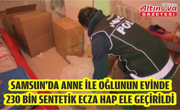 Ekipler, Z.S. (31) ile Ü.S'nin (56) kiraladıkları iki konutta arama yaptı. Anne oğul oldukları öğrenilen şüphelilerin adreslerinde yapılan aramalarda 230 bin uyuşturucu hap ele geçirildi.