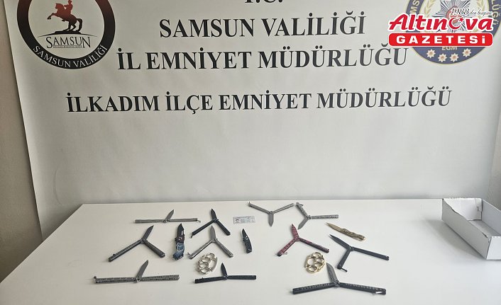 Samsun'un İlkadım ilçesinde üzerinde çok sayıda bıçak ve muşta bulunduran kişi gözaltına alındı.