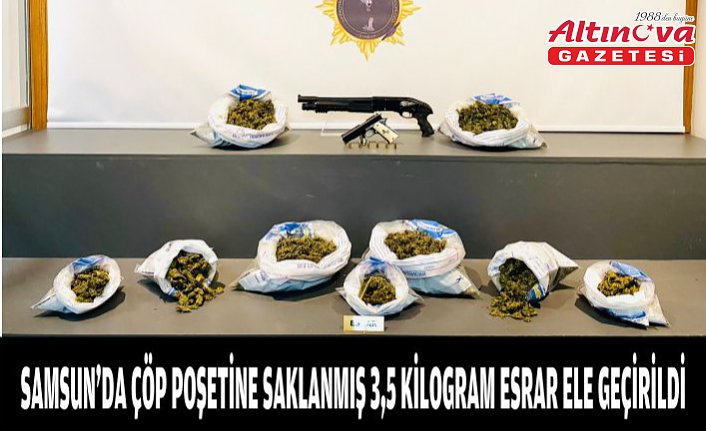 Samsun'un İlkadım ilçesinde çöp poşetine saklanmış 3,5 kilogram esrar ele geçirildi, bir şüpheli gözaltına alındı.