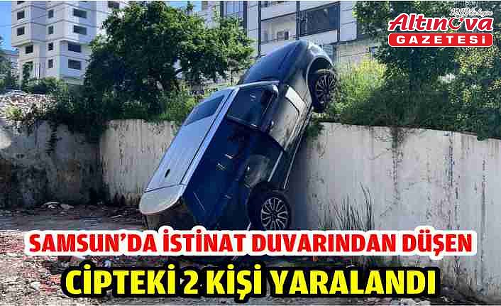 Samsun'un İlkadım ilçesinde istinat duvarından düşen cipteki 2 kişi yaralandı.