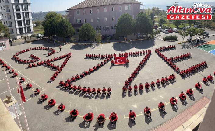 Okul bahçesinde toplanan 250 öğrenci, "Gazze" koreografisi oluşturdu, Türk bayrağı açtı.
