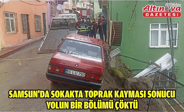 Samsun'un İlkadım ilçesinde toprak kayması sonucu yolda çökme oluştu.
