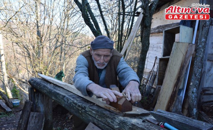 Kastamonu'nun İnebolu ilçesinde 87 yaşındaki Salih Vural, evinin bahçesine kurduğu atölyesinde 15 yıldır sandal küreği üretiyor.