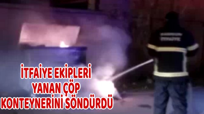 İTFAİYE EKİPLERİ YANAN ÇÖP KONTEYNERİNİ SÖNDÜRDÜ