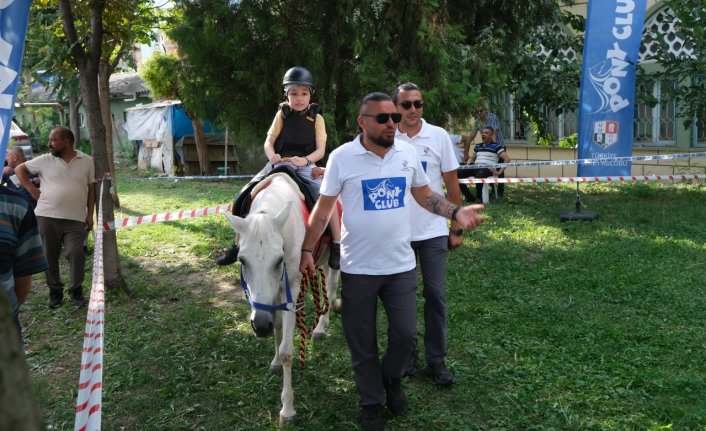 Karabük'te çocuklar, Türkiye Jokey Kulübünce (TJK) sürdürülen sosyal sorumluluk projesi kapsamında ata bindi.