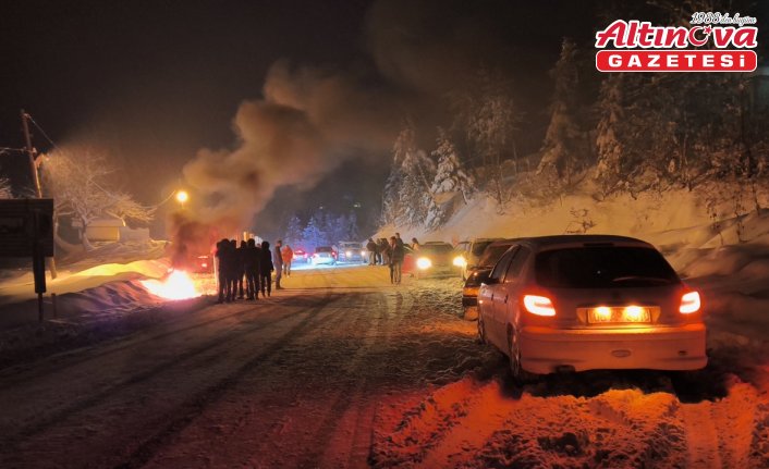 Öte yandan Esentepe Mahallesi Hazar Caddesi'nde ateş yakılması ihbarı üzerine bölgeye giden itfaiye aracı kayarak yol kenarında mahsur kaldı.
