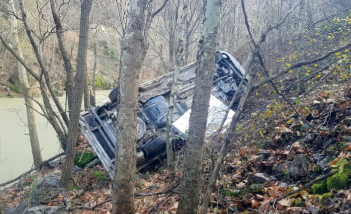 Karabük'te şarampole devrilen kamyonetin çaya düşmesini ağaçlar engelledi