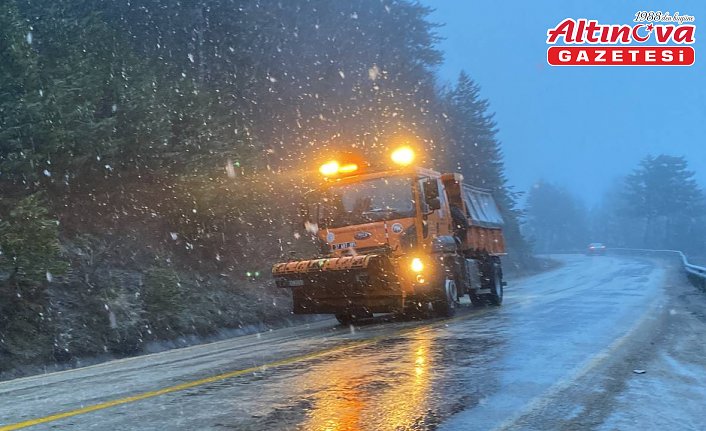 Trafik ve karayolları ekipleri, Karabük-Bartın kara yolunda kar yağışına karşı önlem aldı.