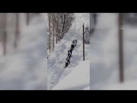 Karla kaplı köyde depremzedeler için pişirilen ekmekleri sırtlarında metrelerce taşıdılar