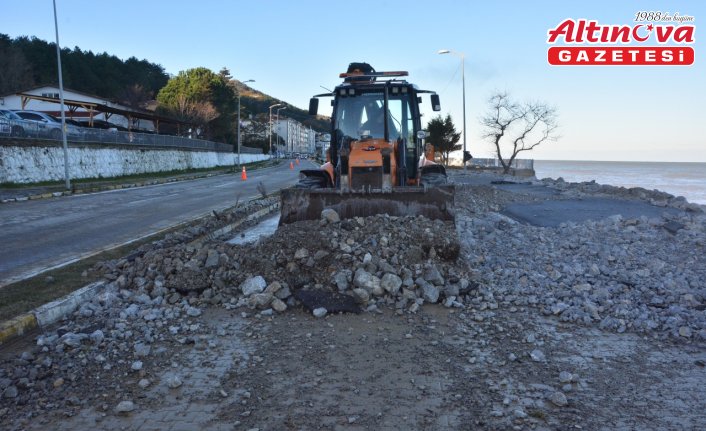 Karayolları ve belediye ekipleri, dalgaların yola ve işletmelere taşıdığı molozları temizlemek için çalışmalara başladı. KASTAMONU (AA)