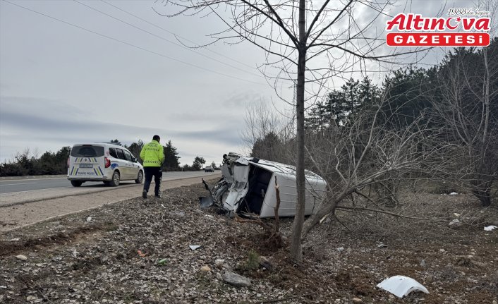 Mehmet Akif K. idaresindeki 37 FC 830 plakalı minibüs, Kastamonu Doğu Çevre yolu Örencik köyü mevkisinde ​​​​yol kenarındaki ağaca çarparak devrildi.