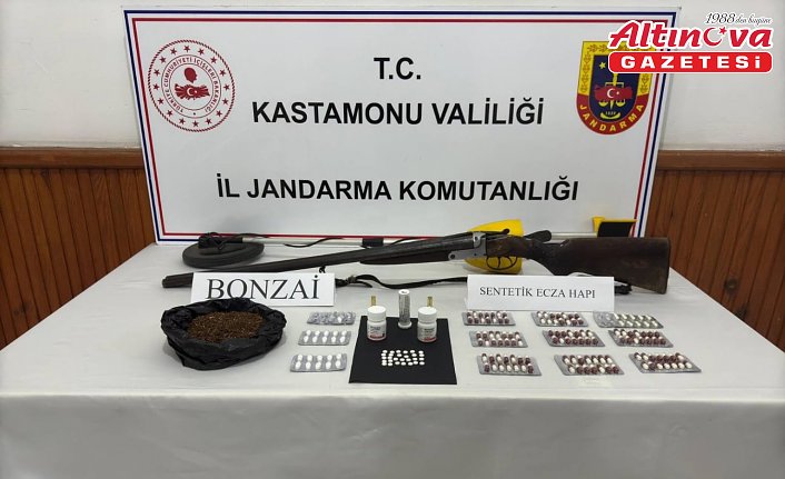 İl Jandarma Komutanlığı ekiplerince Araç ilçesinde M.Ç'nin ev ve aracında yapılan aramada, sentetik ecza hapı ve uyuşturucu ele geçirildi.