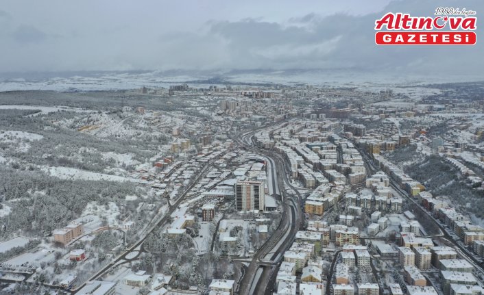 Ekipler, kapanan yolları açmak için çalışmalarını aralıksız sürdürken, karın kent merkezinde oluşturduğu manzara dron ile görüntülendi. KASTAMONU (AA)