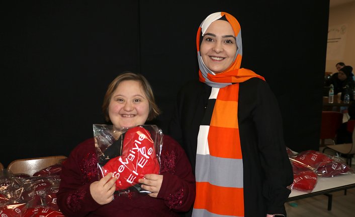 Kastamonu'da özel gereksinimli birey anneleri tarafından yapılan "Sevgiyle el ele" yastıkları, 3 Aralık Dünya Engelliler Günü'nde özel gereksinimli çocuklara hediye edildi.
