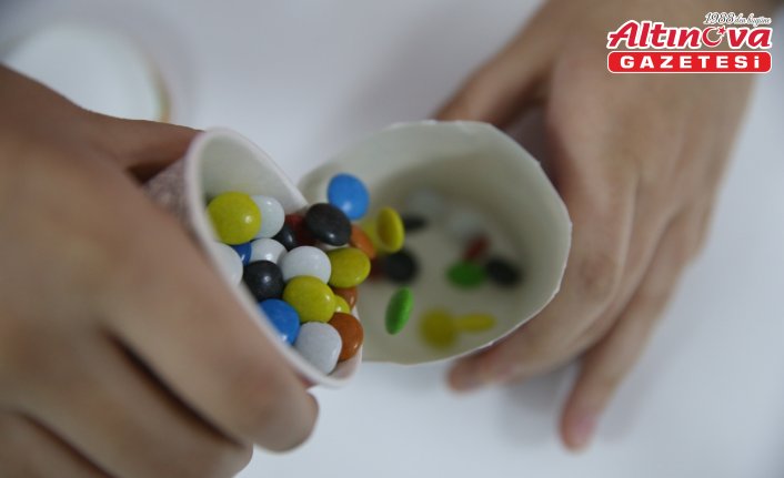 "Hedeflediğimiz konu bu. Bunun için üniversite ekibimiz, genç, kadın, il teşkilatı olarak hep birlikte çalışıyoruz. Projemize 20'ye yakın arkadaşımız katıldı. Logolu bardaklar var, çocuklarımızın gözüne hitap edecek şekilde. Kenarlarına Kızılayın 'hayırlı ramazanlar' etiketini yapıştırdık. Bardağın ağız kısmını kesiyoruz. Zımbalayarak çanta modeline dönüştürüyoruz. İçine de bonibon şeker ve çocuklarımızın yüzünü güldürecek ikramlıklar koyuyoruz. Türk Kızılay olarak bu tür faaliyetlerimizi her zaman sürdürüyoruz. Yaşlısından gencine, çocuğuna her alanda varız. Bu ramazanda da çocuklarımızın camiye teşvikini artırmak, bu manevi huzuru artırmak için uğraşıyoruz."