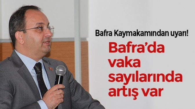 Bafra ilçesinde güvenlik ve danışma kurulu toplantısında konuşan İlçe Kaymakamı Cevdet Ertürkmen vaka sayılarında artış olduğu belirterek ilçe sakinlerini uyardı.