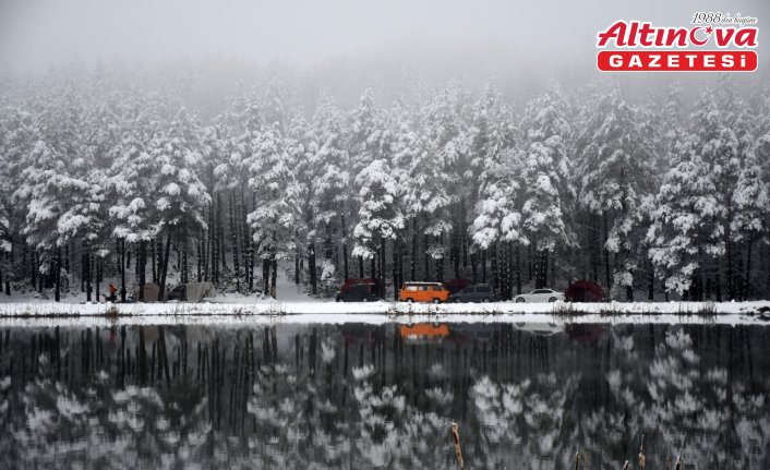 Doğaseverlerin tercih ettiği yerler arasında bulunan yaylada ve içinde barındırdığı göletin çevresinde kar yağışının ardından kış manzarası oluştu.
