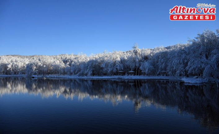 Düzce'nin Kaynaşlı ilçesinde kar yağışının ardından Korugöl Tabiat Parkı beyaza büründü.
