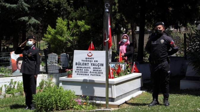 SAMSUN (AA) - İçişleri Bakanlığından 81 il valiliğine gönderilen "Şehit Ailelerinin Kabristan Ziyaretleri" konulu genelge kapsamında kısıtlamadan arife ile Ramazan Bayramı'nın birinci gününde muaf tutulan şehit aileleri kabristan ziyaretinde bulundu.Samsun'da arife günü kabristan ziyareti gerçekleştiren aileler, şehitlerin kabri başında Kur'an-ı Kerim okudu, dua etti.İl Emniyet Müdürü Ömer Urhal ve emniyet mensupları Asri Mezarlığı'nda şehitlik ziyaretinde bulunarak kabristanlara karanfil bıraktı.Samsunlu şehit Astsubay İstihkam Teknisyen Kıdemli Üstçavuş İlhan Hamlı'nın ağabeyi Ayhan Hamlı, AA muhabirine, devletin duyarlılık göstererek şehit ailelerini kısıtlamadan muaf tutmasından memnun olduğunu ifade etti.Kardeşinin, Doğubayazıt devlet kara yolunun Pamuk Geçidi mevkisini kesen PKK terör örgütü mensupları tarafından şehit edilen 4 kahraman astsubaydan biri olduğunu söyleyen Hamlı, "Şehit ailelerini düşünenlere teşekkür ediyoruz. Ben bir şekilde şehitlik ziyareti yaparak şehidimizle daha çok buluşabiliyorum. Ama annem Bedriye Hamlı yaşı gereği birçok kısıtlamaya tabii olması nedeniyle bu süreçte şehitlikten çok uzak kaldı. En çok annemin adına bu sokağa çıkma muafiyeti nedeniyle çok memnun olduk. Kimse böyle günlerde şehidini yalnız bırakmak istemiyor. Bu başka bir duygu. Yaşamayan bunu bilemez." ifadesini kullandı. - ÇorumÇorum'da sokağa çıkma kısıtlamasından muaf tutulan şehit aileleri kabristan ziyareti gerçekleştirdi.Ziyaretlerde şehitleri için dua eden aileler, kabirlere çiçek bıraktı.Ayrıca İçişleri Bakanlığının genelgesi doğrultusunda İl Müftülüğünce Çorum Şehitliği'nde imam hatip görevlendirildi.Çorum Şehit Aileleri ve Vazife Malulleri Derneği Başkanı Galip Deniz de ailesiyle birlikte geldiği şehitlikte oğlu şehit Astsubay Bekir Eren Deniz'in kabri başında dua etti.Deniz, AA muhabirine, şehit ailelerinin bayram nedeniyle kabir ziyaretleri için muaf tutulmasının kendilerini çok mutlu ettiğini söyledi.Şehit ailelerinin, Ramazan Bayramı yaklaşırken tam kapanma nedeniyle kabristanı ziyaret edememe endişesi yaşadığını belirten Deniz, "Bize bu imkanı veren Cumhurbaşkanı'mıza, İçişleri Bakanı'mıza sonsuz teşekkürlerimi sunuyorum. Bu ziyaret bizim için çok önemli. Özellikle iki gün izin verilmesi bizler için çok anlamlı. Şehitlerimizi ziyaret edebilmekten çok mutluyuz. Devletimize şükranlarımızı sunuyoruz." dedi.- SinopSinop'ta, sokağa çıkma kısıtlamasından muaf tutulan şehit aileleri, Kent Şehitliği'ndeki yakınlarının kabrini ziyaret etti.Kur'an-ı Kerim okuyup dua eden aileler, mezar taşlarını temizledi, yakınlarının kabrine çiçek dikti.Vali Erol Karaömeroğlu ve beraberindeki heyet de şehitlerin kabirlerini ziyaret ederek çiçek bırakıp dua etti. Karaömeroğlu burada şehit yakınları ile bir süre sohbet etti. - KastamonuKastamonu'da arife ile Ramazan Bayramı'nın birinci gününde sokağa çıkma kısıtlamasından muaf tutulan şehit aileleri şehitliği ziyaret etti.Aileler burada Kur'an-ı Kerim okuyup dua etti.Vali Avni Çakır da şehitliği ziyaret ederek ailelerle sohbet etti.