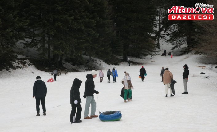 Özellikle çocuklu ailelerin yoğunlukta olduğu Abant'ta çocuklar ve gençler, kar kalınlığının 20 santimetreyi bulduğu alanlarda şambriyeller, kızaklar ve poşetlerle kayarak keyifli vakit geçirdi.