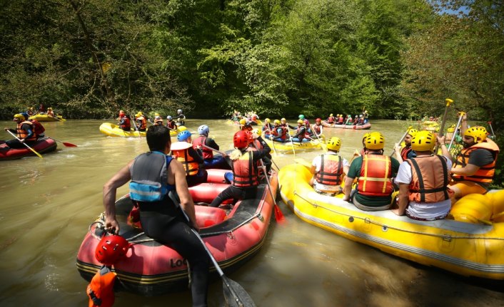 DÜZCE (AA) - Düzce'nin Cumayeri ilçesindeki Dokuzdeğirmen rafting parkuru günde yaklaşık bin adrenalin tutkununu ağırlıyor.