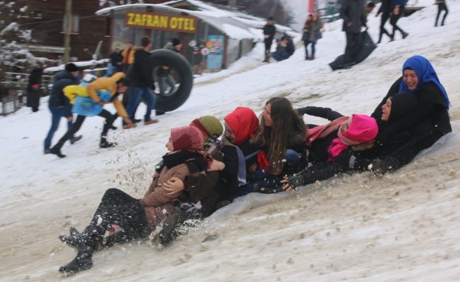 Şenliğe katılan bazı vatandaşlar kar üstünde horon oynarken bazıları ise şambrel ve naylon yardımıyla kaydı.