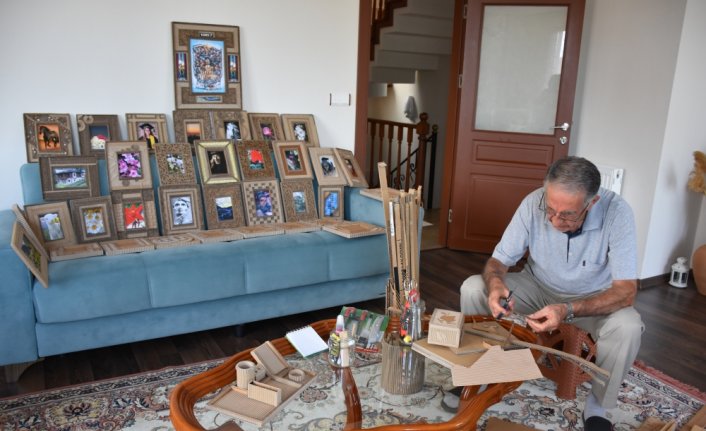 Çocukluğunda ahşap parçalarından oyuncaklar yaparak el becerisini geliştirdiğini ifade eden 7 torun sahibi Öztürk, "Çok zevkli geliyordu, o yıllarda modern oyuncaklarım yoktu. Okulda el sanatları dersinde de kendimi geliştirdim. Emekli olduktan sonra kendime bir uğraş aradım, yaklaşık 7 aydır kartonlardan fotoğraf çerçeveleri yapıyorum." dedi.