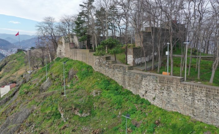 GİRESUN (AA) - GÜLTEKİN YETGİN - Tarihi unsurları ve doğal güzellikleriyle Giresun'un en çok ziyaret edilen yerlerinin başında gelen Giresun Kalesi'nde toprak altında ve çalılıkların arasında kalan surların bir bölümü görünür hale getirildi, üç mağaranın girişi ise temizlendi.