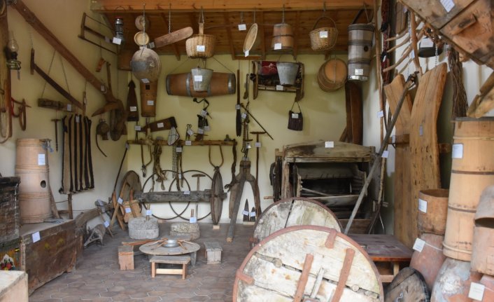 Gümüşhane'nin Şiran ilçesine bağlı Yeniköy'de geçmiş yıllarda kullanılan tarım aletleri ve ev eşyaları sergileniyor.