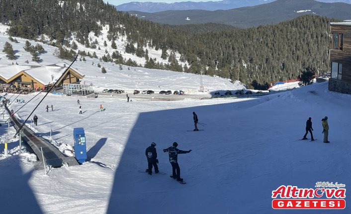 Türkiye'nin önemli kış turizm merkezlerinden Kartalkaya Kayak Merkezi'nde tatilciler, yeni yılın ilk gününde kayak ve snowboard yaptı.
