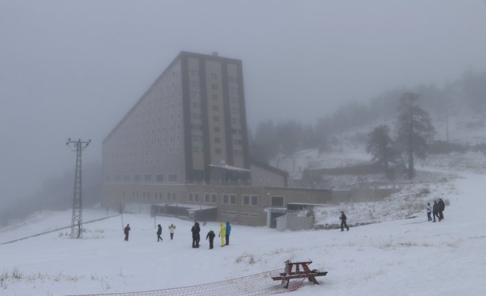 Köroğlu Dağı'nın zirvesinde yer alan ve Kartalkaya Kayak Merkezi'nde gece başlayan kar yağışı aralıklarla devam ediyor.