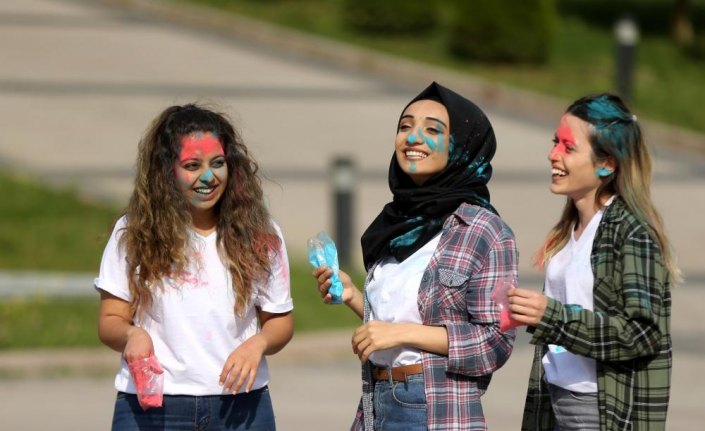 Daha sonra "holi" denilen renkli toz boyaları birbirlerine fırlatan öğrenciler, müzik eşliğinde eğlenerek otizme dikkat çekmeye çalıştı.