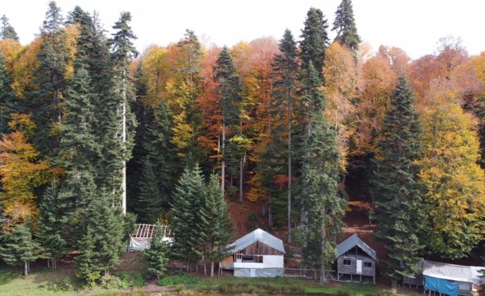 Sarı, kahverengi ve yeşilin binbir tonunu barındıran yayladaki ağaçlarda renk cümbüşü yaşanıyor.